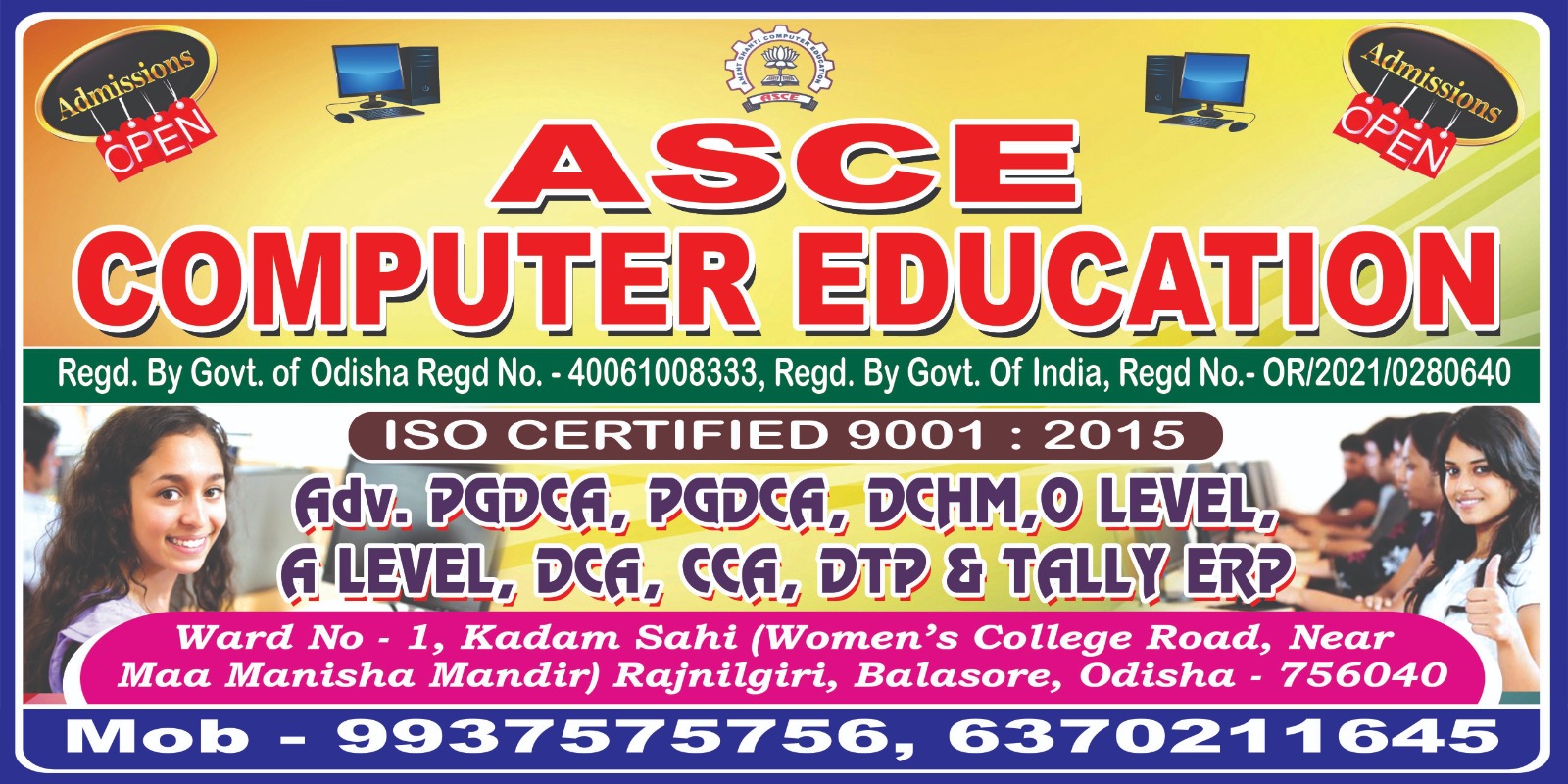 Courses Offered:-ADV.PGDCA, PGDCA, DCA,CCA,DTP,TALLY-ERP9,DCHM,STENOGRAPHY